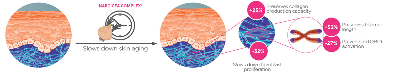 Narciso ralentiza la proliferación de fibroblastos, preserva la longitud de los telómeros y mantiene los fibroblastos en un estado joven.